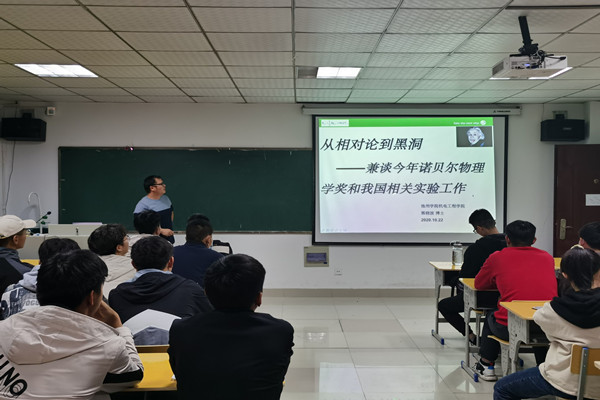 在郭晓波博士的“从相对论到黑洞——兼谈今年诺贝尔物理学奖和我国相关实验工作”讲座中,郭博士首先介绍了狭义相对论的发展过程,结合科幻小说《三体》中的部分场景,提出动钟如何变慢,双生子佯谬,如何通过物理学的方法获得永生及其相应的物理条件。让员工们带着问题一边思考,一边听讲座。讲座的第二部分是广义相对论,结合电影《星际穿越》的部分场景。通过定量计算和图片相结合,展示了时钟变慢的物理效应。讲座的最后,分享了2020年诺贝尔物理学奖的相关情况,以及我国贵州500米直径的射电天文望远镜,引力波探测的天琴计划,让员工们既了解了科学前沿,也了解到我国在广义相对论的理论和实验研究走在世界的前列情况。