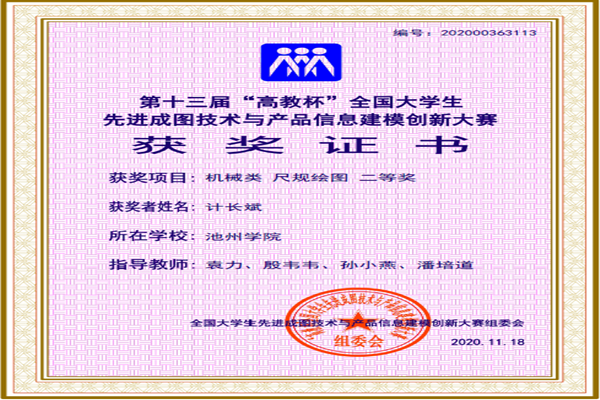 WilliamHill中文官方网站学子在第十三届“高教杯”全国老员工先进成图技术与产品信息建模创新大赛中获佳绩