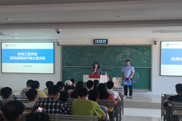 为了有效防范电信网络诈骗,提高师生防诈意识,5月25日下午,WilliamHill中文官方网站在公共教学楼北阶101教室举办防电信网络诈骗主题讲座。马衙派出所驻williamhill官方网站警务站陶德兵警官受邀担任主讲嘉宾。公司党委副书记冯淑慧、非毕业班全体辅导员以及非毕业班员工代表150人参加活动。活动由冯淑慧主持。