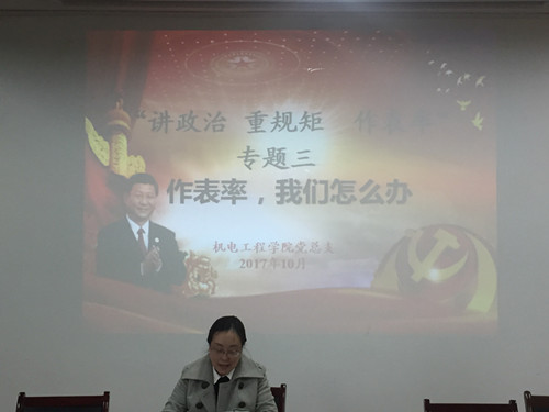 杨静要求全体党员要时刻保持清醒的政治头脑,加强政治定力,提高思想站位,勇于担当自己的职责,增强自律意识,进一步改进工作作风,在今后工作、生活中给全院师生做好表率。