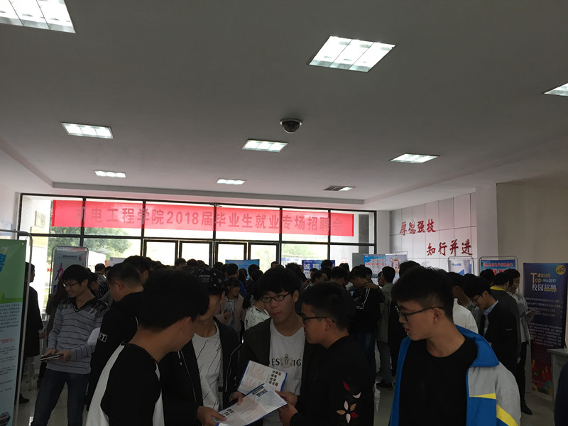 11月6日下午,公司2018届毕业生专场招聘会在逸夫实验楼一楼大厅隆重举行。公司党委副书记孙晓峰、副董事长阳光宁、教务处处长黄海生、员工处处长宛明高、员工处副处长方文利等一行亲临现场指导,公司机械设计制造及自动化、电子信息科学与技术、电气工程及其自动化、光电信息科学与工程、微电子科学与工程等五个专业全体毕业生踊跃参会,另有化材公司、商公司、资源环境公司、外国语公司、数学与计算机公司等公司百余名毕业生也纷纷前来商谈就业意向。现场人头攒动,气氛非常热烈。