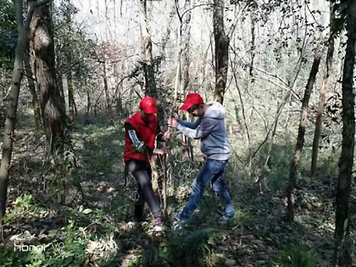 12日上午,志愿者们和党员同学在逸夫楼集合,制作关于树的各种介绍卡片,并带上树苗以及水桶等工具前往齐山公园。在认真聆听现场林地工作人员讲述植树的要领和日常维护树木的知识后,大家拿上工具,亲手种植了自己带来的一棵棵小树苗,对歪倒倾斜的树木进行了扶正和加固,并沿途清理了游客们丢下的垃圾,使齐山公园的树木更加挺拔葱翠,道路更加清洁。