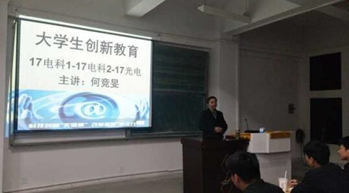 创新是一个民族进步的灵魂,是一个国家兴旺发达的不竭动力。为了贯彻落实党的十九大精神,推进老员工科技创新教育,2018年3月15日晚,2017级电子信息科学与技术、光电信息科学与工程等专业全体同学在博爱北三楼大教室举行了一次创新主题教育讲座,辅导员何竞旻老师主持了该活动。