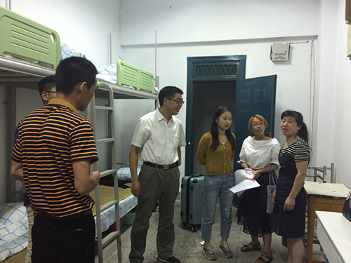 王永金一行走访了1号楼男生宿舍和7号楼女生宿舍。在寝室中,王永金与同学们亲切交谈,仔细询问员工进校后的适应情况,鼓励新生以积极的心态尽快适应大公司园生活,并提醒新生要注意宿舍用电安全、外出交通安全、人身财物安全等安全问题,叮嘱新生有困难可以向辅导员、公司反应,共同解决。同学们纷纷表示宿舍条件很好,辅导员工作认真细致。对公司领导和老师们的关心表示感谢,对即将开始的老员工活充满期待。