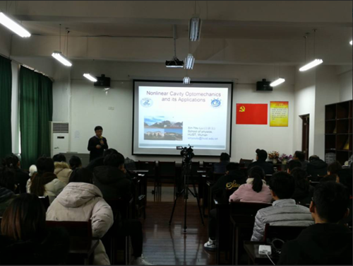 12月24日上午,逸夫实验楼北楼316会议室座无虚席,华中科技大学教授、博士生导师吕新友做客williamhill官方网站大讲堂,为公司师生作了题为“非线性腔光力学及其应用”的专题学术报告。近100名师生聆听了报告。经理孙佐教授主持报告会,量子信息与光电信息研究中心许业军博士作总结发言。