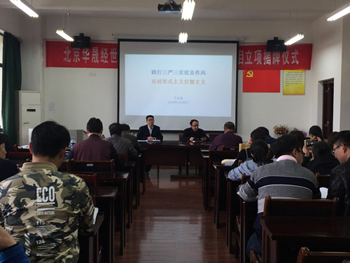 为深入推进公司“严强转”专项整治行动向纵深开展,3月20日,党委副书记王永金给全体教职工作了一场《践行三严三实优良作风 反对形式主义官僚主义》的党课辅导报告。公司全体教职工参加。