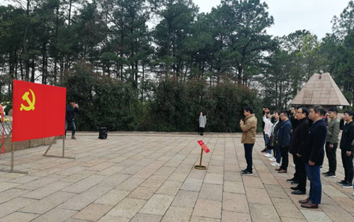全体党员怀着崇敬的心情在烈士纪念碑前肃立,奏唱《中华人民共和国国歌》、敬献花篮、面向革命先烈默哀、鞠躬,表达对先烈的崇高敬意。随后,全体党员面对鲜红的党旗,庄严举起右拳,重温入党誓词,不忘初心、坚定信念、奋力拼搏。