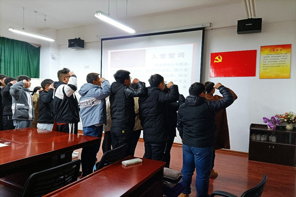 入党宣誓大会在庄严的国际歌中拉开帷幕。32位新党员面对鲜红的党旗,许下为共产主义奋斗终生的誓言。公司党委委员、经理孙佐作了大会致辞,对新加入党组织的同学表示祝贺并提出殷切希望,一要加强党的基本理论学习,二要解决好思想入党,三要以实际行动践行入党。公司党委委员和员工支部的组织委员为新党员代表佩戴了党徽。