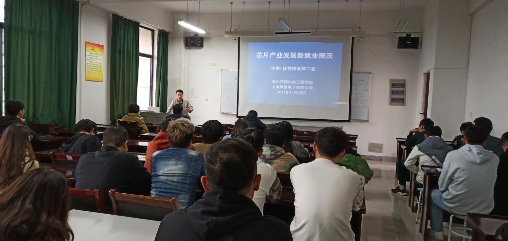 员工郑二亚结合自身大学求学历程及五年艰辛的就业、创业经历,与同学们分享了成功经验。他从企业角度给同学们提出学习的要求,我们不应该只满足于课业知识,而应该明确职业规划,博览群书,找准专业发展方向的发力点。同时,他从芯片产业的发展及就业现状,结合公司产品研发设计的成长历程,鼓励广大同学热爱专业,潜心钻研。鼓励同学们增强勇气信心,自强不息、吃苦耐劳、诚实守信,同时要有一颗感恩的心,懂得回报公司、社会和国家。认真回答了同学们提出的人生、求学、创业、就业等相关问题。他用诚恳感人的言辞、催人奋进的事迹引发了在场的同学们的强烈共鸣。