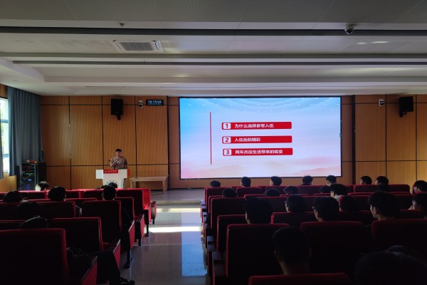 活动邀请了机械设计及理论教研室退役士兵方元强老师、21机械设计制造及其自动化对口班退役士兵陈祥同学、22光电信息科学与工程班退役士兵庞帅旗同学做宣传分享。方元强老师重点就为什么要参军入伍,入伍征集条件、征集流程、优待政策等内容进行了详细解读,并结合自己在部队服役时的生活视频向同学们分享了部队的有趣生活和经历。陈祥同学、庞帅旗同学分别围绕入伍后的精彩、两年兵役生活带来的蜕变做了精彩分享。老师和同学们的分享引来阵阵掌声,会场气氛十分热烈。