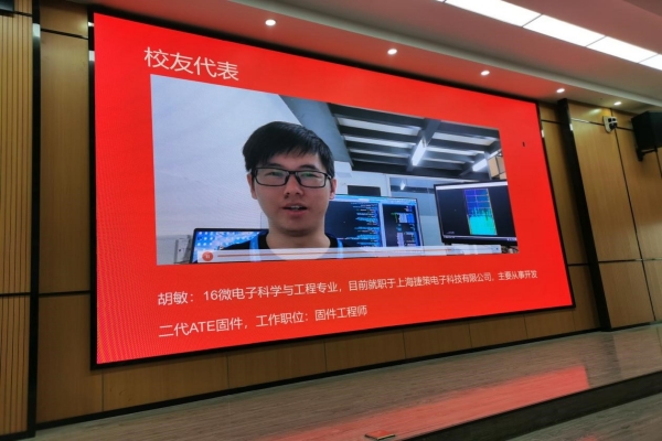 见面会邀请了2021级微电子专业员工代表崔孟然同学向新生介绍了自己在公司的生活与学习经验。同时还邀请了往届微电子专业优秀员工代表通过在线小视频形式表达了对专业新同学的祝贺并以切身体会介绍了公司专业学习对未来工作的重要性。
