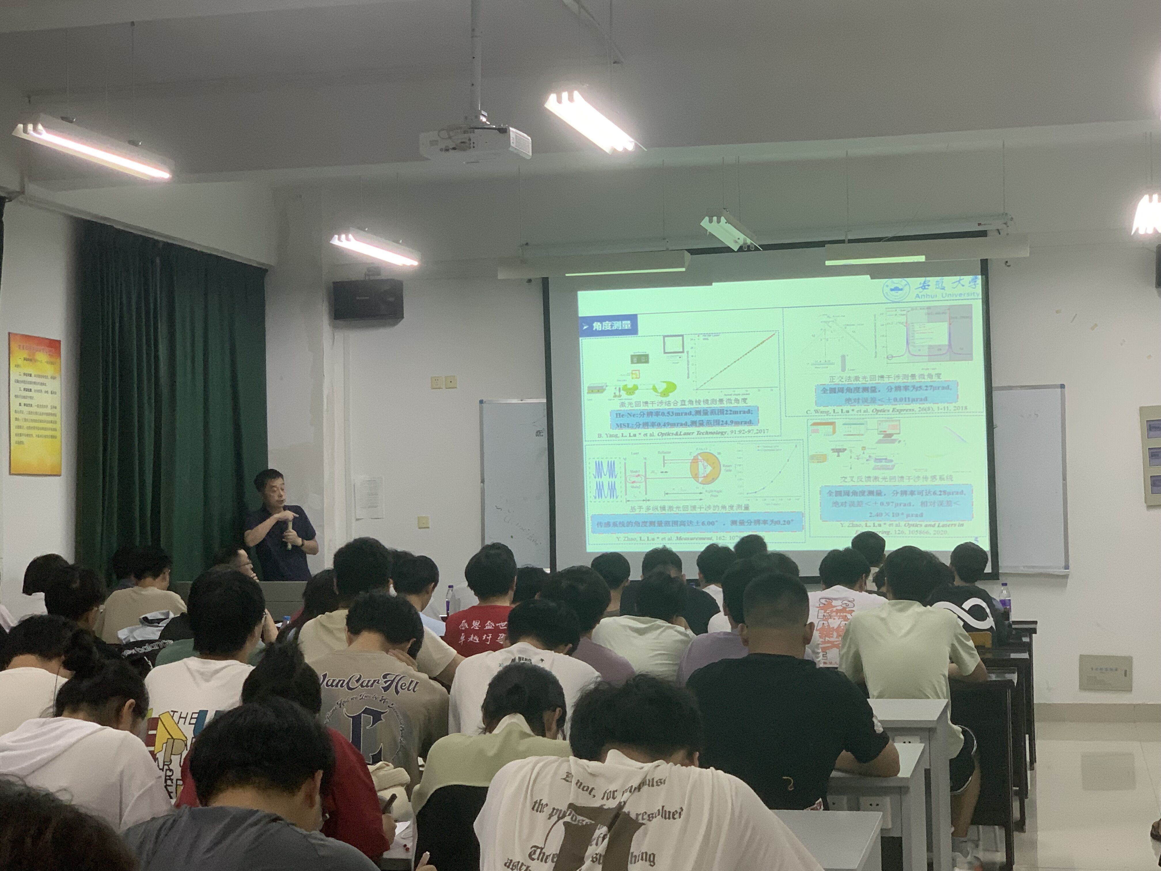 吕亮在报告中深入阐述了激光回馈干涉技术的原理、研究背景及其在全光纤结构下的应用进展。他指出,这一技术在深海流速测量、深地微振动监测、天基空间目标微动探测、生物医学无损检测、数控机床传感、智能农机装备等多个领域展现出广泛的应用前景。此外,吕亮还就安徽大学物理与光电工程公司的研究生招生政策进行了介绍,并诚挚邀请公司优秀学子报考安徽大学硕士研究生,共同探索光电技术的未来。