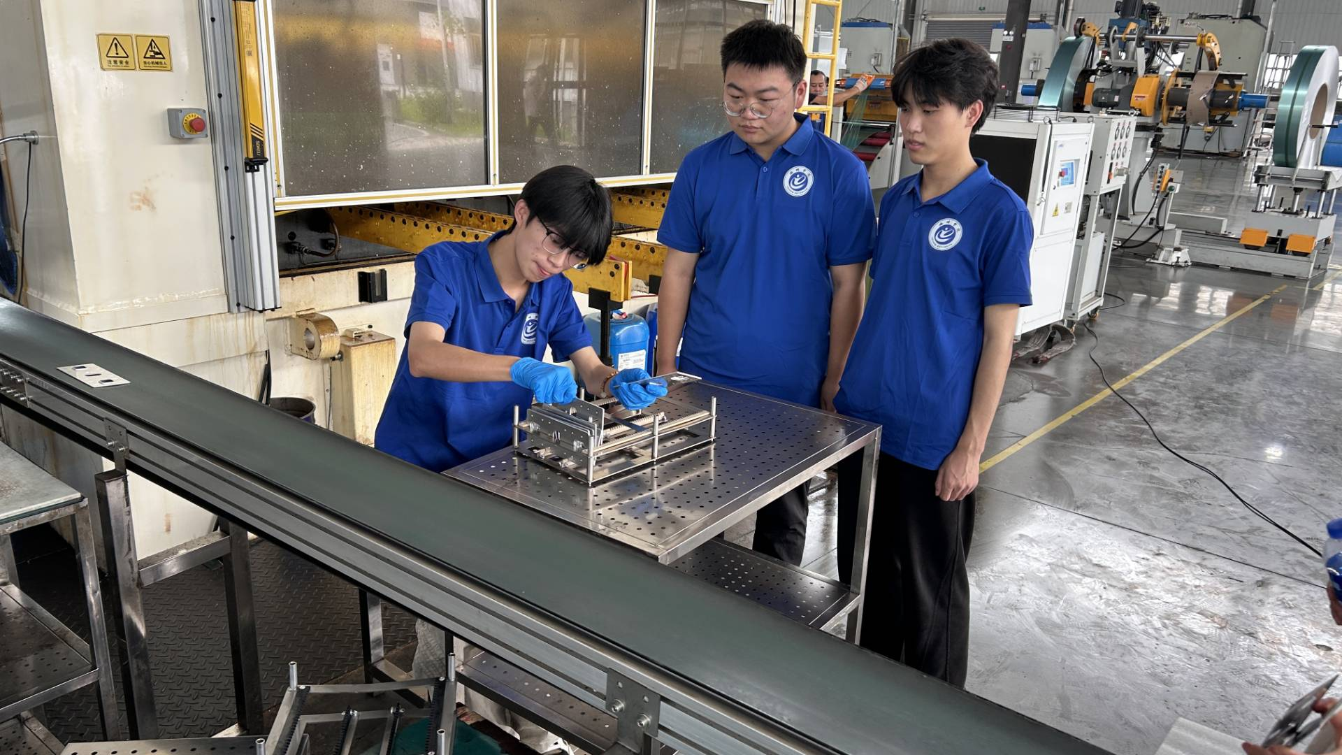 团队在严格的安全培训与防护装备加持下,员工们化身“生产线上的探索者”,分组投入实战。他们驻守在流水线旁,目光如炬地追踪工件流转轨迹,捕捉质量管控的关键节点;在技术员的指导下,运用游标卡尺、千分尺等基础量具,对冲压件的孔径、壁厚进行精准测量。部分同学还参与到去毛刺、包装等后工序,用砂纸打磨出光滑曲面,以胶带封装出规活动结束员工们的笔记本上记满设备参数与工艺要点,冲压机的雷霆之势与精密测量的毫厘之争,让“智能制造”不再是课本上的抽象概念,“精益生产”的理念也通过亲手触摸的工件温度,深深烙印在每个人心中。这场实践不仅是对电气技术应用场景的具象化学习,更点燃了青年学子投身工业创新的热血与豪情。