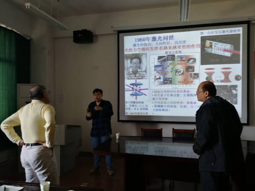 熊豪副教授从腔光力系统的半经典描述出发,介绍了光力诱导透明的产生机制,重点阐述了其个人及其团队在国际上首次提出腔光力系统中的二阶边带效应,以及高阶边带效应等方面的重要进展。
