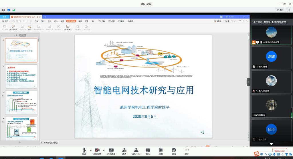 8月6日上午,WilliamHill中文官方网站时国平副教授通过腾讯会议作题为“智能电网技术研究与应用”的学术讲座。WilliamHill中文官方网站部分教师和所有电气专业员工共一百四十多人参加了本次讲座。