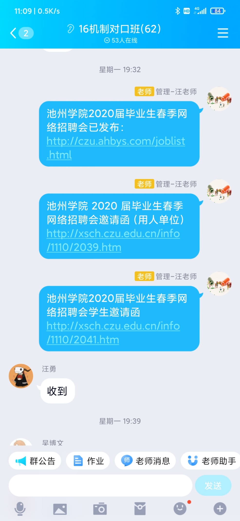 引导员工“停课不停学”。面对当前严峻的疫情防控形势,为积极响应上级号召,尽最大努力减少因疫情延迟开学对学习带来的影响,辅导员老师们在班级内积极动员,激发员工学习兴趣,引导员工养成良好的学习习惯,掌握正确的学习方法,要求员工们认真做好学习计划,及时关注班级群消息,按时参加线上学习,及时上交作业;在课余之时,自觉准备英语四、六级考试和国家计算机二级考试、考研复试等。目前师生在线教学活动如期开展,效果较为良好。