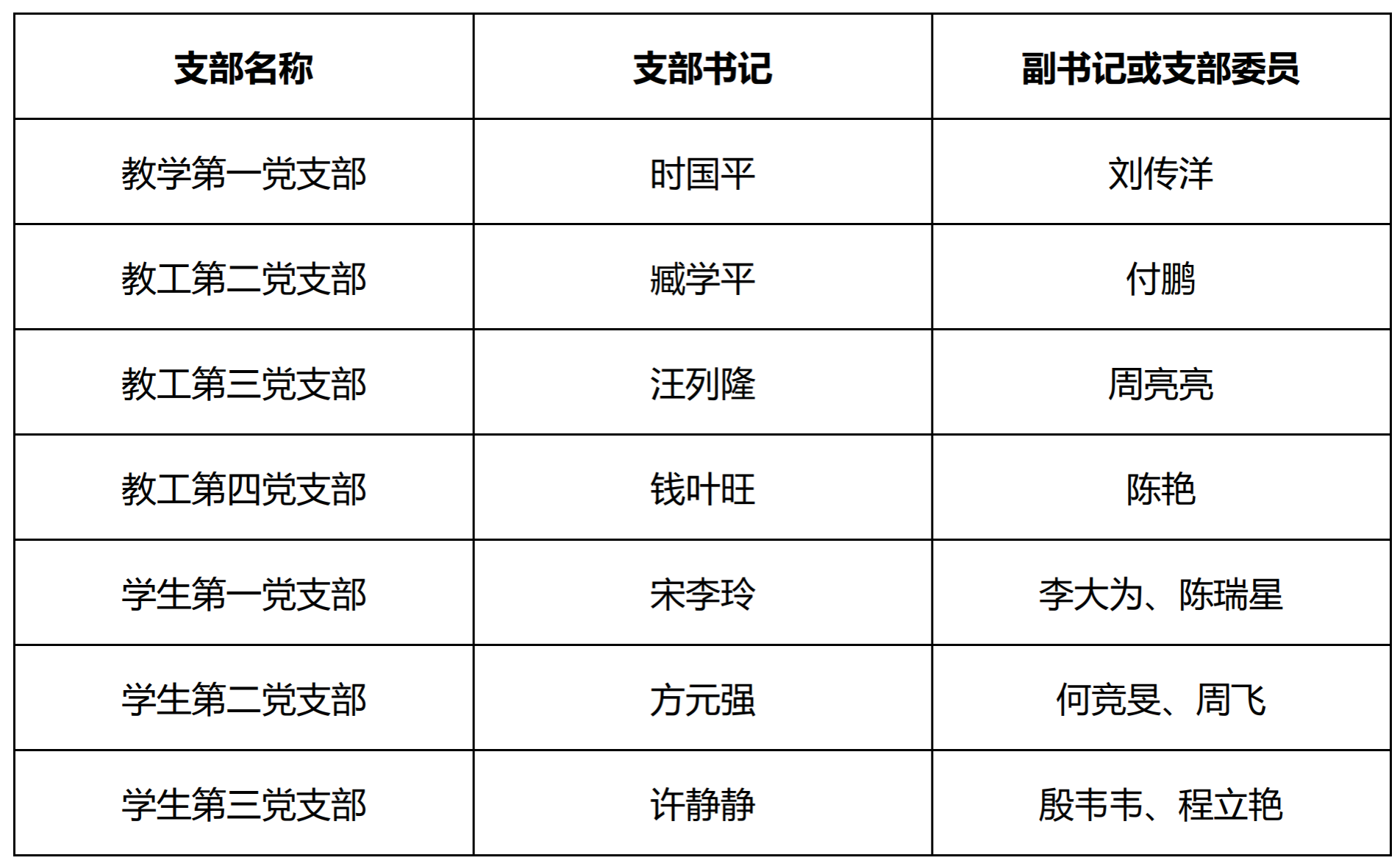 委员(按姓氏笔画排序):刘景景、汪列隆、时国平、张勋友、吴卫锋、钱叶旺、臧学平